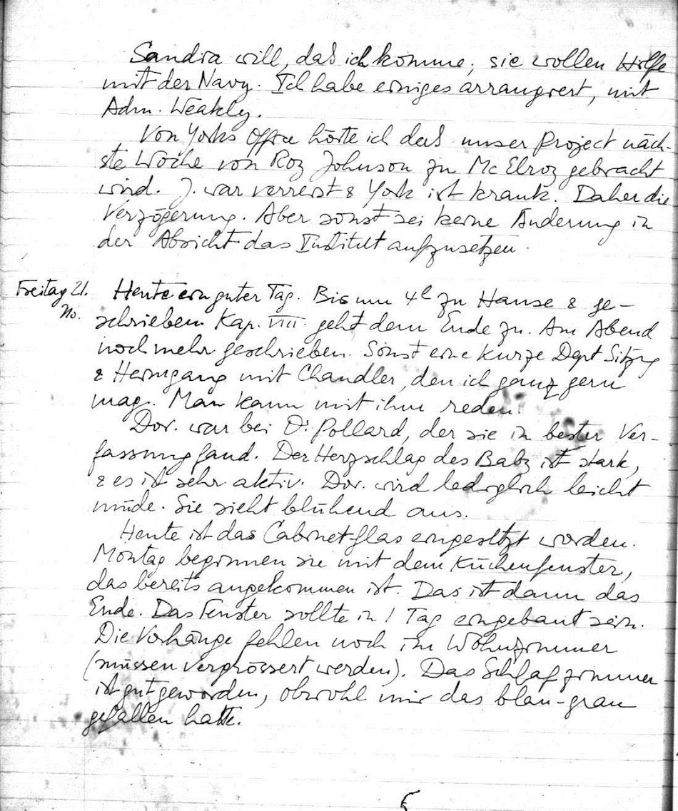 Von Yorks Office hörte ich daß unser Project nächste Woche von Roy Johnson zu McElroy gebracht wird. J. war verreist & York ist krank. Daher die Verzögerung. Aber sonst sei keine Änderung in der Absicht das Institut aufzusetzen.