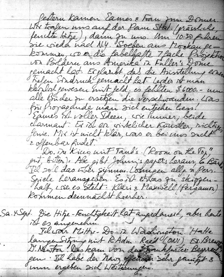 Ich war Mittw.-Do. in Washington. Hatte lange Sitzung mit R. Adm. Reed (ONI), Dr Brewstan, Dr Newton. Das kam von den Frankfurter Besprechungen. Ich habe der Navy offenbar sehr genützt & nun ergeben sich Weiterungen.