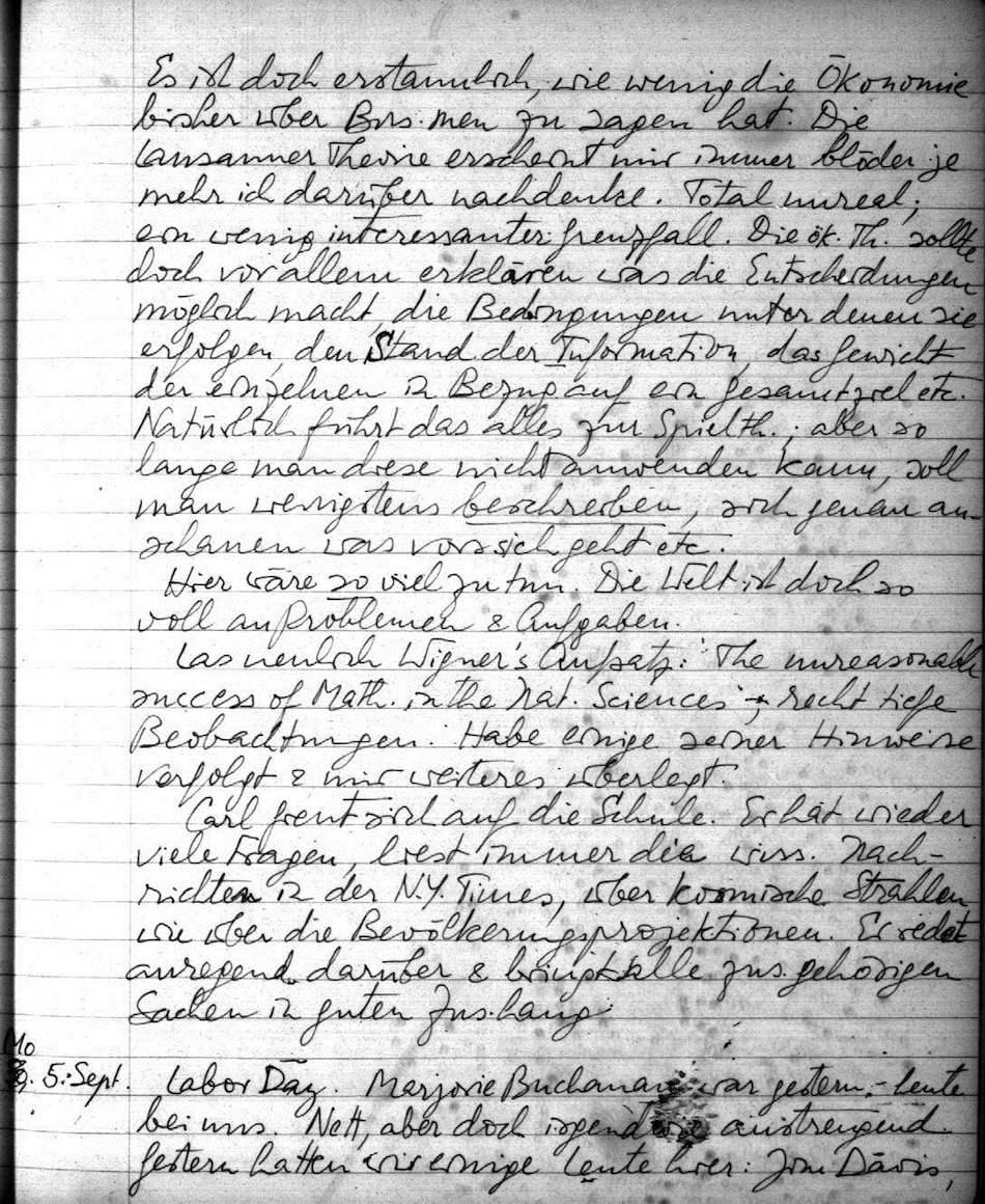 Oskar Morgenstern Tagebuchedition: Tagebuch 1959-60, Eintrag 1960-09-05