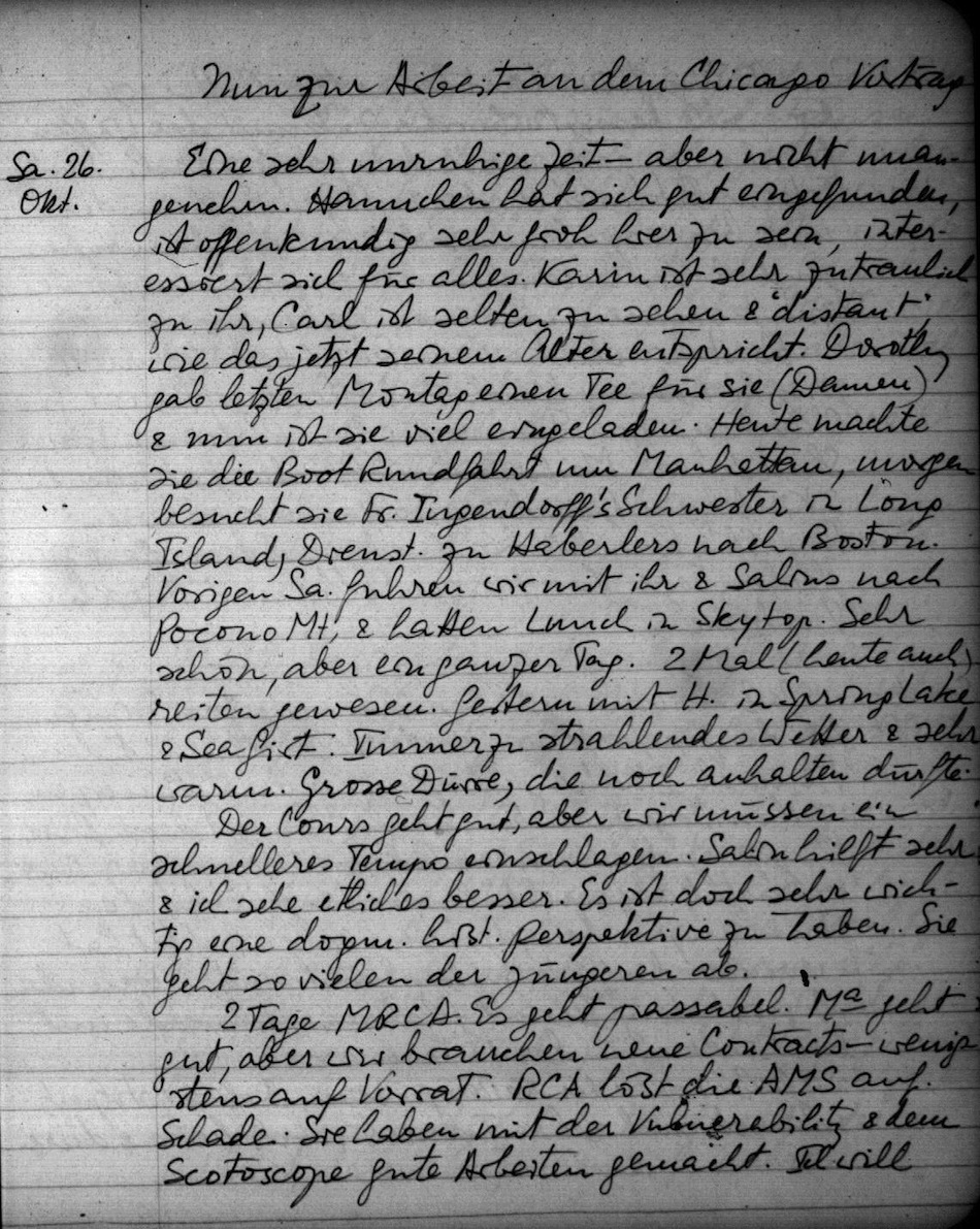 Gestern & Mo. sprach Salin wieder über Mittelalter, pretium justum, etc. alles sehr gut, gelegentlich abschweifend. So. waren beide hier, nach dem Besuch in Wash., wo alles sehr gut gegangen war. Schade, daß er nicht den ganzen Nov. bleiben kann. Isa-Marie muß eine Gallenblasenoperation durchmachen.