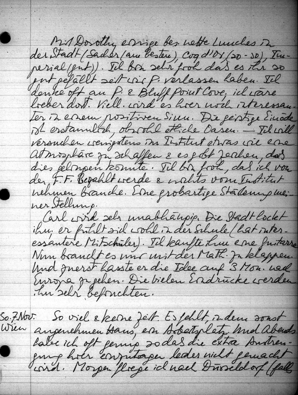 So viel & keine Zeit. Es fehlt, in dem sonst angenehmen Haus, ein Arbeitsplatz. Und Abends habe ich oft genug, so daß die extra Anstrengung hier einzutragen, leider nicht gemacht wird. Morgen fliege ich nach Düsseldorf (falls nicht zu viel Nebel!), mit Mommsen dann nach Köln um im "Tröger Kreis" über US zu sprechen. Di. früh werde ich mit Stone tel. der in Bonn sein wird. Dann heim (d.h. n. Wien, vorläufig) zum Dinner beim Schweizer Botschafter (für Urs Schwarz, dessen Buch: "Strat. gestern, heute & Morgen" (!) kürzlich erschien. Heute waren wir mit Hannchen im Fischerhaus mittag essen, dann habe ich gearbeitet. Gestern wir 4 bei strahlendem Wetter in Carnuntum, Petronell & Pressburg. Der Grenzübergang einfach aber teuer. Es gab 3 Wachtürme (schäbiger als in Ungarn), aber ein Stahltor für eine enge Strasse. P. schaut trüb aus, schäbig, viele rote Flaggen, "Proletarier aller Länder etc. " das sind doch längst versunkene Zeiten. Wo sind die Proletarier in Westeuropa & US, Canada, Australien, Neuseeland etc.? Die dem Schlagworte entsprächen?