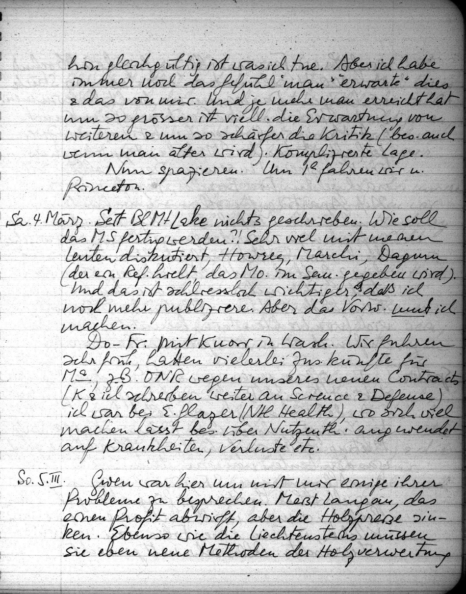 Do-Fr. mit Knorr in Wash. Wir fuhren sehr früh, hatten vielerlei Zus.künfte für Ma, z.B. ONR wegen unseres neuen Contracts (K & ich schreiben weiter an Science & Defense) ich war bei E. Glazer (Ntl Health), wo sich viel mach lässt, bes. über Nutzenth. angewendet auf Krankheiten, Verluste etc.