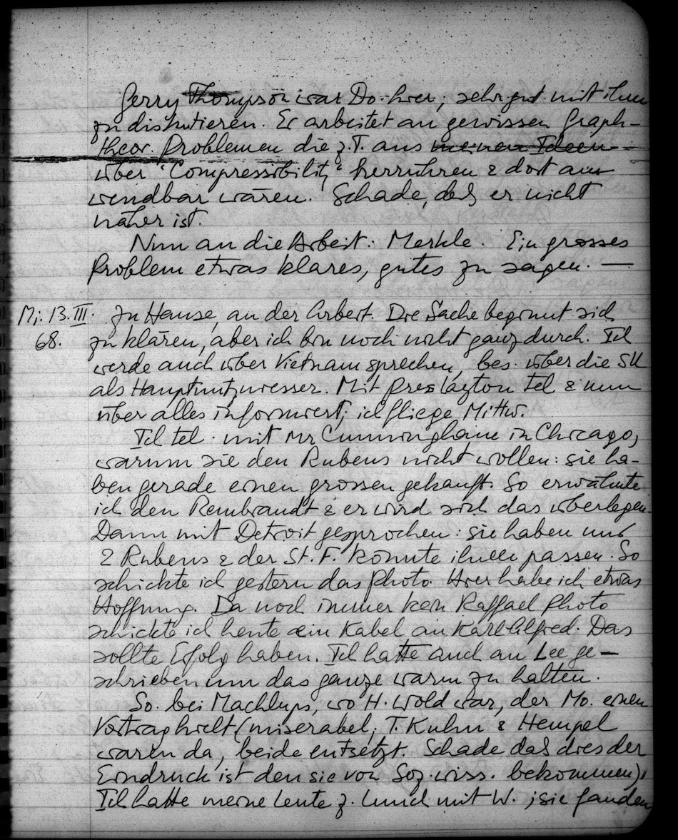 Oskar Morgenstern Tagebuchedition: Tagebuch 1966-68, Eintrag 1968-03-09