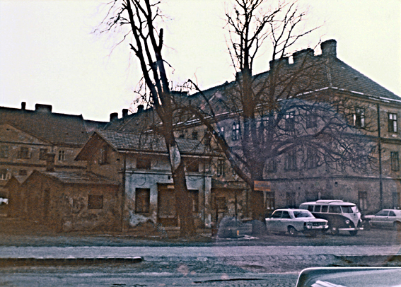Der Consum vor dem Arbeiterwohnhaus Altgebäude.