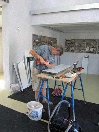 Das Museum Marienthal in Arbeit Erwin Milalkovits, der mit Planung, Leitung und Umsetzung des Innenausbaus vom Museum Marienthal betraut ist, bei der Arbeit: Schnappschüsse aus über 1.000 Stunden ehrenamtlicher Tätigkeit. Die Fotos stammen von © Tibor Schwab, Gramatneusiedl, aufgenommen im Sommer 2011. Anfragen zu den Bildern richten Sie, bitte, an den »Kulturverein Museum Marienthal-Gramatneusiedl«.