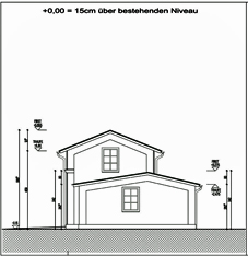 Hof, straßenseitig gelegen, ist nur angedeutet.